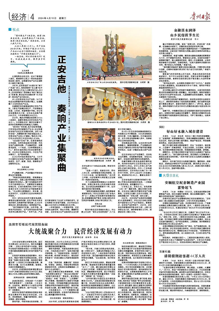 貴州日報報道 貴陽市石板現(xiàn)代商貿(mào)服務(wù)園:大統(tǒng)戰(zhàn)聚合力 民營經(jīng)濟(jì)發(fā)展有動力 編輯日期:2024-05-10 00:00:00 作者:天利集團(tuán)