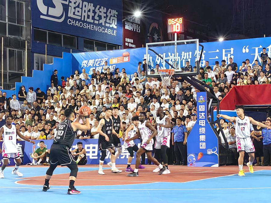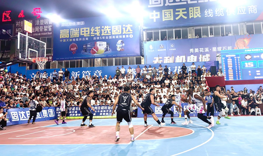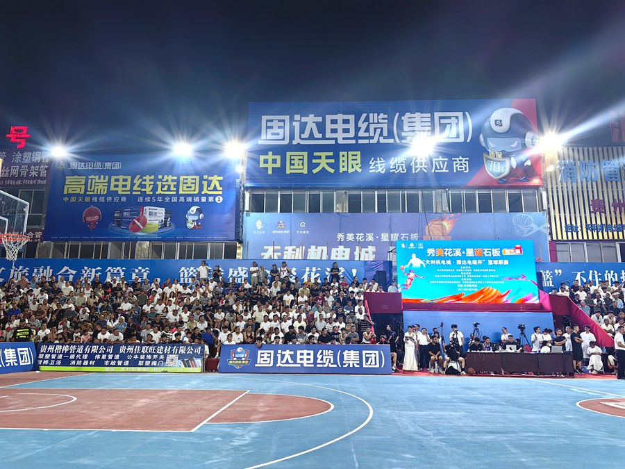 8月26日晚8:00,貴陽花溪區石板鎮擺勺村天利機電城A4棟籃球場上歡呼不斷、氣氛熱烈。第三屆“天利機電城·固達電纜杯”籃球聯賽在激昂的旋律和全場的期待中拉開帷幕。